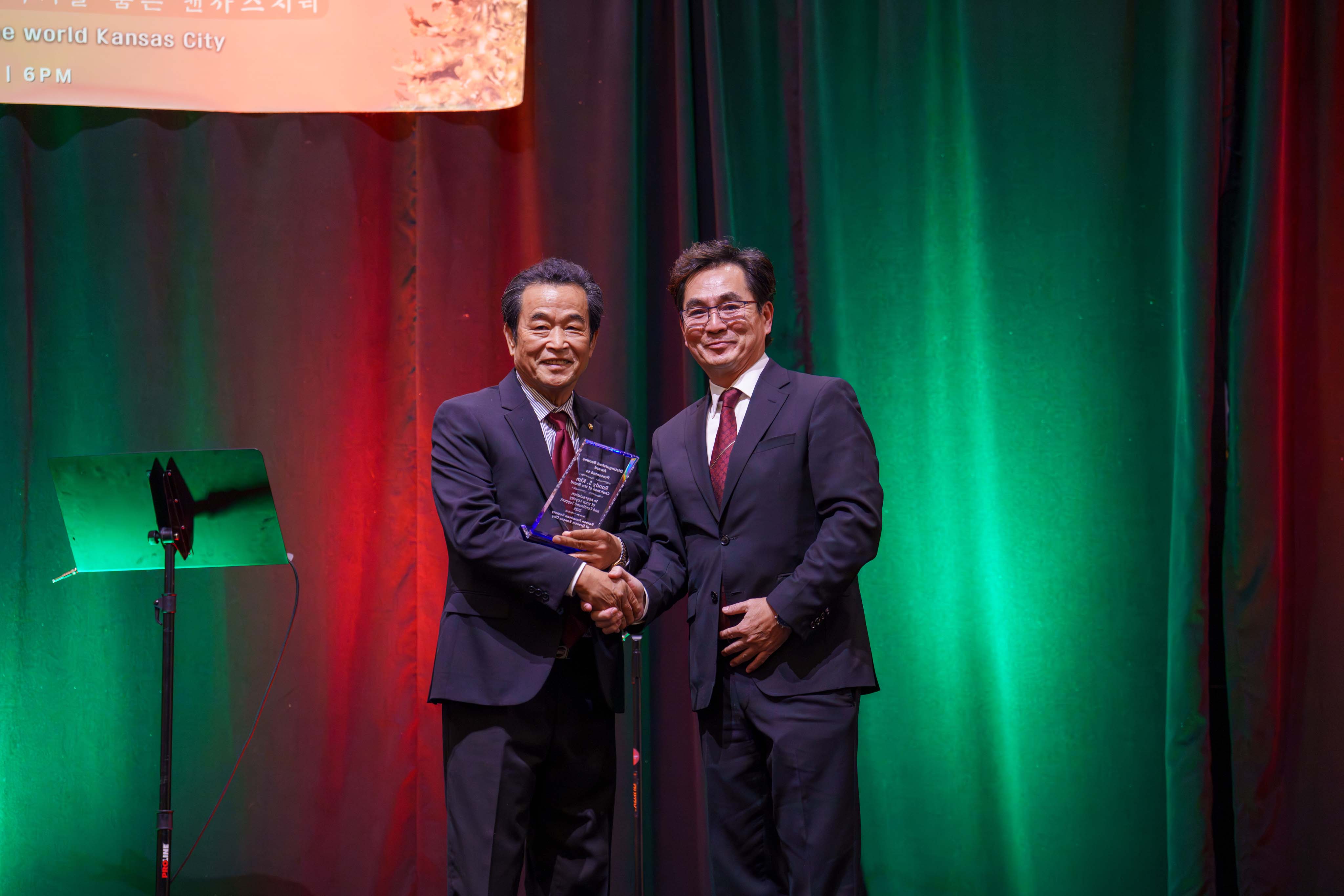 A special moment of the evening included the presentation of a plaque of appreciation to Board Chairman Sung Bae Kim for his dedicated service to KASGKC. Additionally, the 2nd Annual Entrepreneur Award was presented to Jay Kim, President of Data Locker, honoring the contributions of local Korean entrepreneurs.